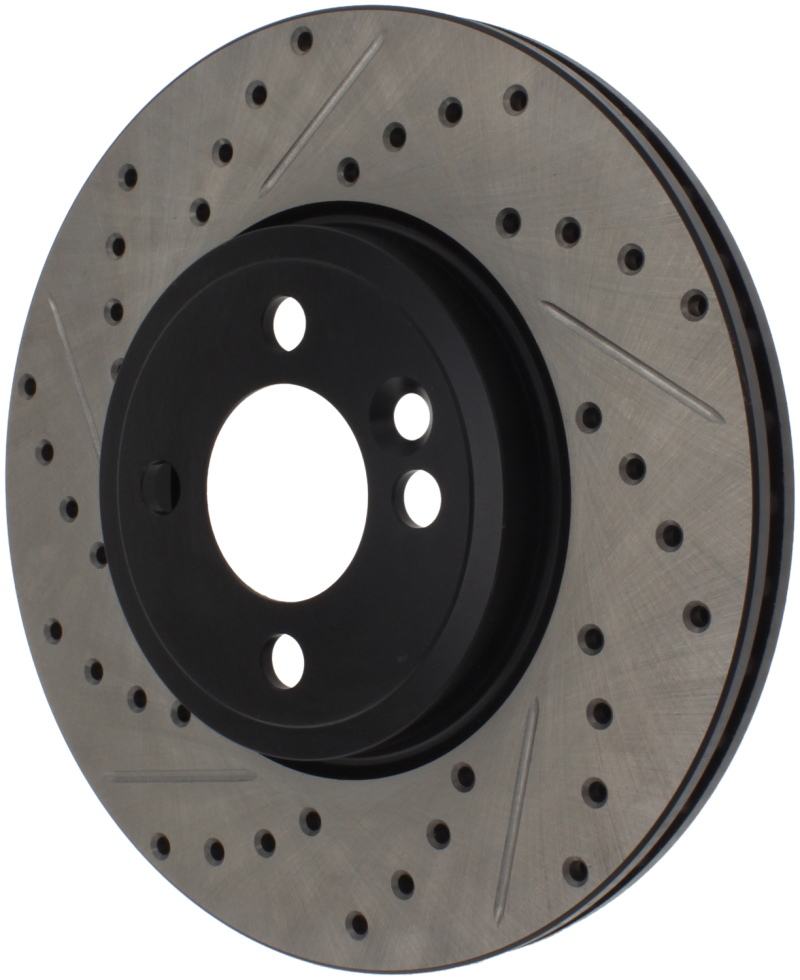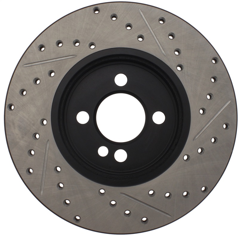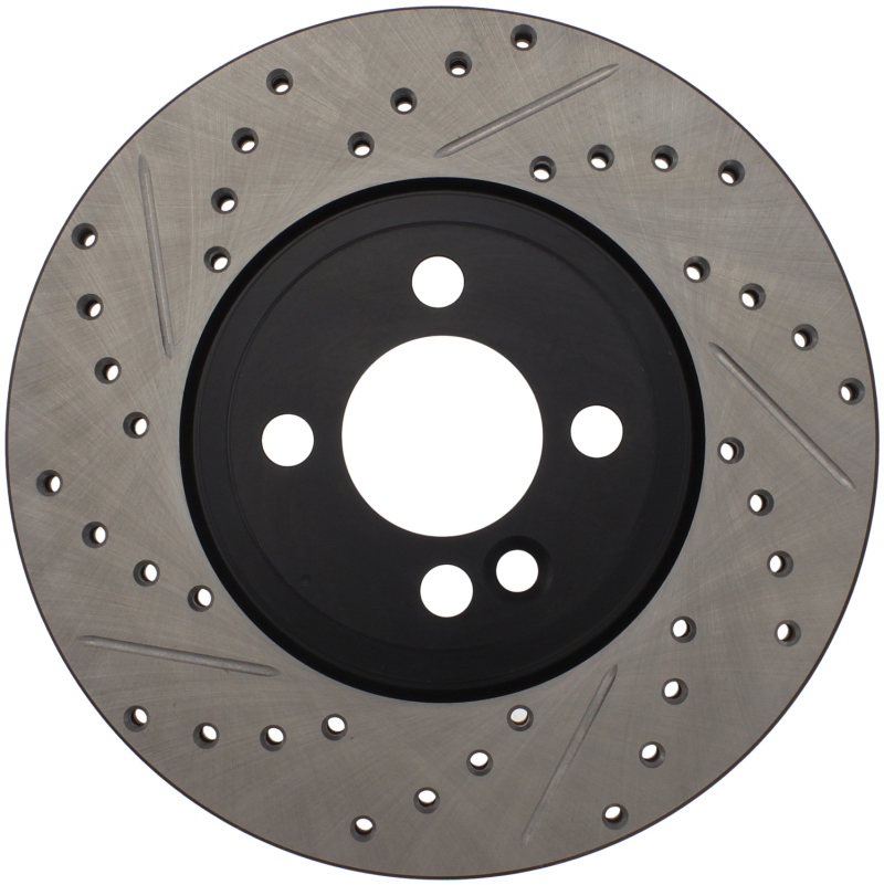 StopTech Drilled and Slotted Sport Rotors are 1-piece direct replacement brake discs for factory brake systems and stock calipers that look great behind your wheels – and offer significantly improved braking performance. The unique cross-drilling and slotting aids with heat and brake dust dispersal; prevents glazing of the pads; adds bite and improves wet and dry braking performance. Built to last; the black e-coating provides protection from corrosion and the high carbon metallurgy (in most applications) offers quieter operation; better crack resistance and increased performance.. StopTech Drilled and Slotted Sport Rotors are 1-piece direct replacement brake discs for factory brake systems and stock calipers that look great behind your wheels - and offer significantly improved braking performance. The unique cross-drilling and slotting aids with heat and brake dust dispersal; prevents glazing of the pads; adds bite and improves wet and dry braking performance. Built to last; the painted hat provides protection from corrosion and the high carbon metallurgy (in most applications) offers quieter operation; better crack resistance and increased performance.. Premium e-coated rotor with advanced metallurgy that greatly reduces pad squeal. Especially effective with higher friction; European style brake pad compounds. Drilled & Slotted for increased bite; improved looks and better performance. Premium e-coated rotor with advanced metallurgy that greatly reduces pad squeal. Especially effective with higher friction; European style brake pad compounds. Drilled/Slotted for increased bite; improved looks and better performance. Premium rotor with advanced metallurgy that greatly reduces pad squeal. Especially effective with higher friction; European style brake pad compounds. Drilled & Slotted for increased bite; improved looks and better performance. Premium e-coated rotor with advanced metallurgy that greatly reduces pad squeal; Especially effective with higher friction; European style brake pad compounds; Added Molybdenum and Chromium to resist rotor cracking. Sport Drilled Rotor; StopTech; StopTech Rotor; Stop Tech Rotor; Stop-Tech Sport Rotor; StopTech Sport Rotor; StopTech Brake Rotor; Stoptech Drilled/Slotted Rotor. StopTech Slotted & Drilled Sport Brake Rotor 07-13 Mini Cooper. StopTech Sport Drilled & Slotted Brake Rotor; Front Right. StopTech Sport Drilled/Slotted Brake Rotor; Front Right. Black E-Coated Non-Friction - Corrosion Protection. Double Disk Ground For Consistent Friction Surface. Superior Resistance To Cracks From Thermal Stress. Sport Drilled & Slotted Brake Rotor; Front Right. Drilled/Slotted Helps Evacuate Gasses/Dust/Heat. Directional Curve Vane Designs On Selected Apps. Power Alloy Is Descendant Of Patented AeroRotor. Increased Initial bite and Wet Weather Response. Sport Drilled/Slotted Brake Rotor; Front Right. StopTech Slotted & Drilled Sport Brake Rotor. Sport Drilled/Slotted Brake Rotor. Stoptech Drilled/Slotted Rotor. 2007 - 2016 Mini Cooper. Direct OE Replacement. Disc Brake Rotor. Slot/Drill Rotor
