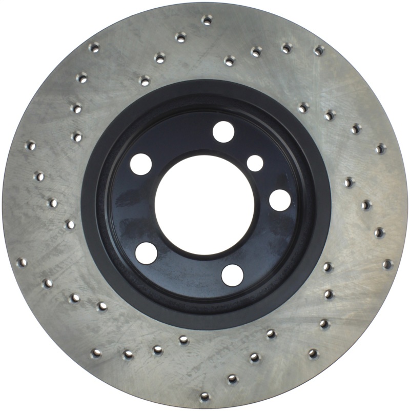 StopTech Drilled Sport Rotors are 1-piece direct replacement brake discs for factory brake systems and stock calipers that look great behind your wheels – and offer significantly improved braking performance. The unique cross-drilling aids with heat and brake dust dispersal; prevents glazing of the pads; adds bite and improves wet and dry braking performance. Built to last; the black e-coating provides protection from corrosion and the high carbon metallurgy (in most applications) offers quieter operation; better crack resistance and increased performance.. StopTech Drilled Sport Rotors are 1-piece direct replacement brake discs for factory brake systems and stock calipers that look great behind your wheels - and offer significantly improved braking performance. The unique cross-drilling aids with heat and brake dust dispersal; prevents glazing of the pads; adds bite and improves wet and dry braking performance. Built to last; the black paint provides protection from corrosion and the high carbon metallurgy (in most applications) offers quieter operation; better crack resistance and increased performance.. Premium e-coated rotor with advanced metallurgy that greatly reduces pad squeal. Especially effective with higher friction; European style brake pad compounds. Drilled for increased bite; improved looks and better performance. Premium rotor with advanced metallurgy that greatly reduces pad squeal. Especially effective with higher friction; European style brake pad compounds. Slotted for increased bite; improved looks and better performance. Premium e-coated rotor with advanced metallurgy that greatly reduces pad squeal; Especially effective with higher friction; European style brake pad compounds; Added Molybdenum and Chromium to resist rotor cracking. Sport Drilled Rotor; StopTech; StopTech Rotor; Stop Tech Rotor; Stop-Tech Sport Rotor; StopTech Sport Rotor; StopTech Brake Rotor; Stoptech Drilled/Slotted Rotor. 2011 - 2016 Mini Cooper Countryman, 2013 - 2016 Mini Cooper Paceman. StopTech Sport Cross Drilled Brake Rotor; Front Left. Black E-Coated Non-Friction - Corrosion Protection. Double Disk Ground For Consistent Friction Surface. Superior Resistance To Cracks From Thermal Stress. Increased Initial bite and Wet Weather Response. Drilled/Slotted Helps Evacuate Gasses/Dust/Heat. Power Alloy Is Descendant Of Patented AeroRotor. Directional Curve Vane Designs On Selected Apps. Sport Cross Drilled Brake Rotor; Front Left. StopTech Drilled Sport Brake Rotor. Sport Cross Drilled Brake Rotor. Stoptech Drilled/Slotted Rotor. Direct OE Replacement. Cross Drilled Rotor. Disc Brake Rotor
