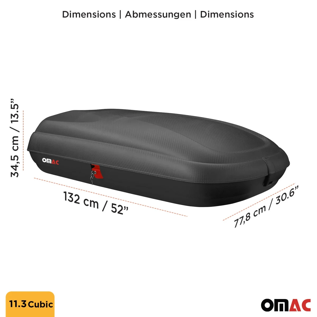 Roof Rack Cargo Box - 11.3 Cubic Feet - Dual Side Opening - Carbon Fiber Texture